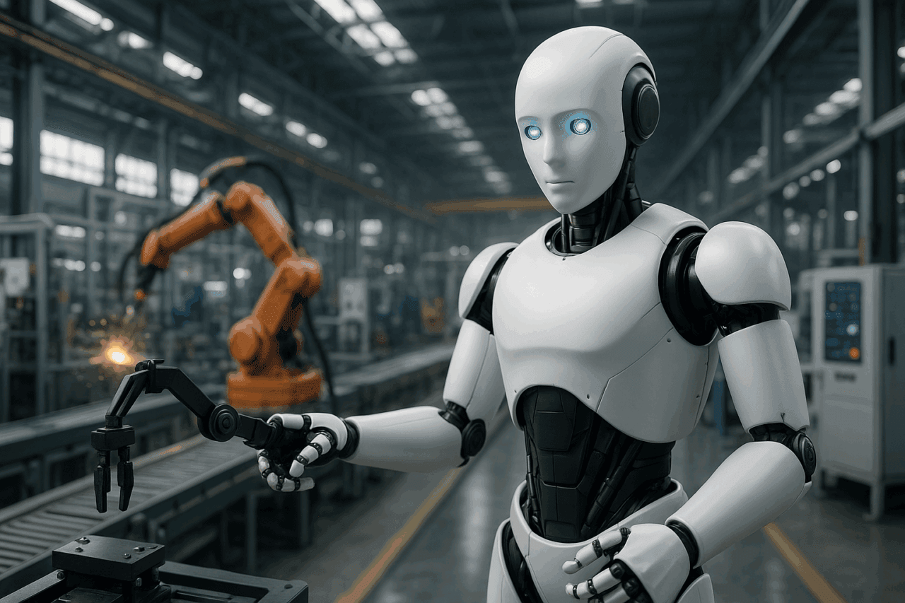 ヒューマノイドロボットは、人間と似た二足歩行や腕・指を備えた形態を持ち、人が使う道具や階段のある環境で自然に作業できるロボットを指す。車輪型やアーム型ロボットに比べて自由度が高く、人間の職場をそのまま流用できるため、工場や倉庫、災害現場など適用範囲が広い点が強みだ。