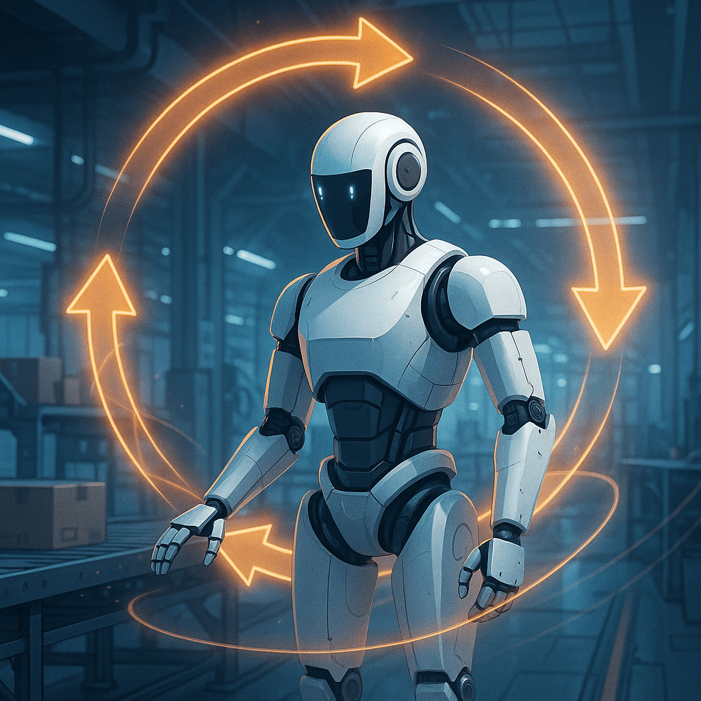 フィジカルAIとは、ロボットが自分の身体を使って「歩く」「つかむ」「運ぶ」といった動作を自律的に計画・実行できる知能を指す。ChatGPTのような言語モデルが言葉を理解し文章を生成する“知覚・思考”の領域に強いのに対し、フィジカルAIは“運動”を担当し、現実世界でタスクを完了させるところに価値がある。カメラや触覚センサーから得た情報をリアルタイムで処理し、環境の変化に合わせて即座に行動を修正できる点が特徴だ。